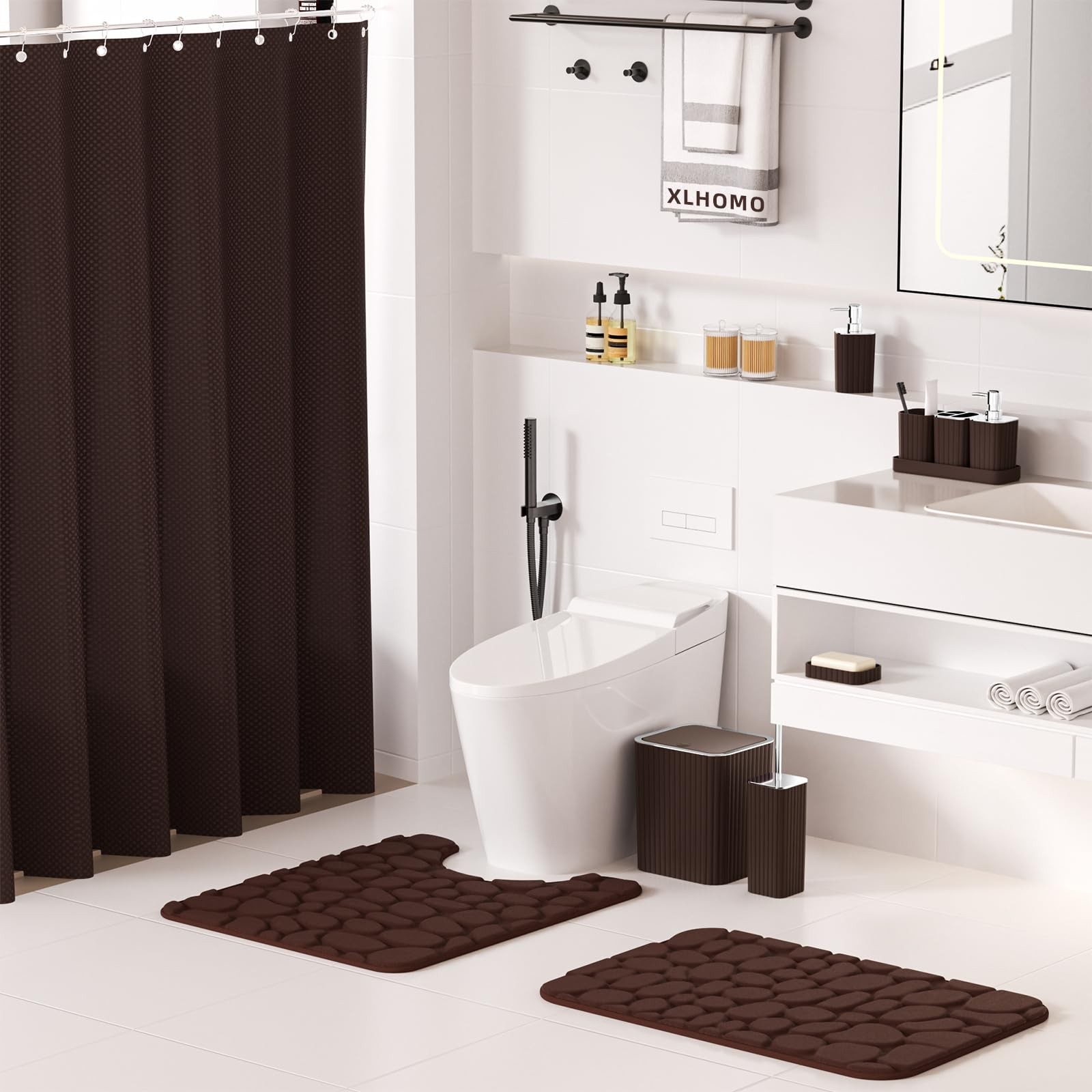 XLHOMO Bathroom Accessories Set 25PC Brown Bathroom Sets with Shower Curtain...