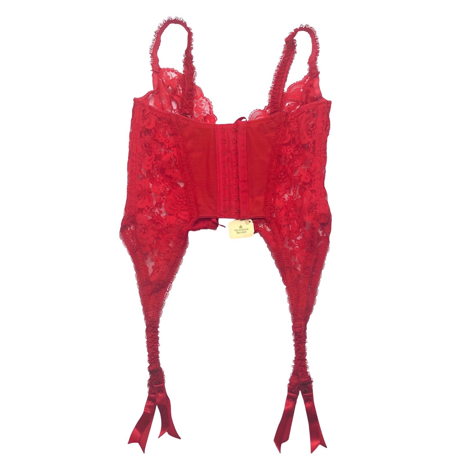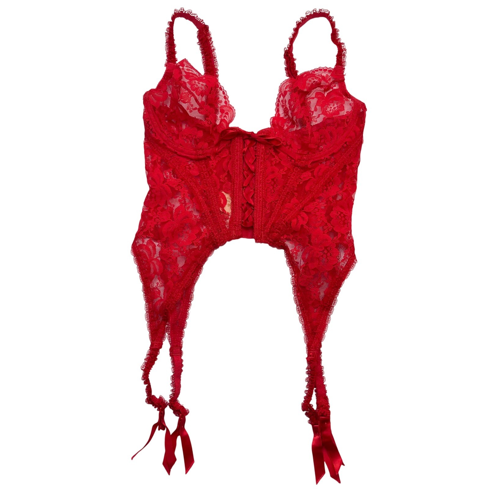 VTG Victorias Secret Jezebel Renee of Hollywood NWT Red Lace Corset Top 34 S 80s