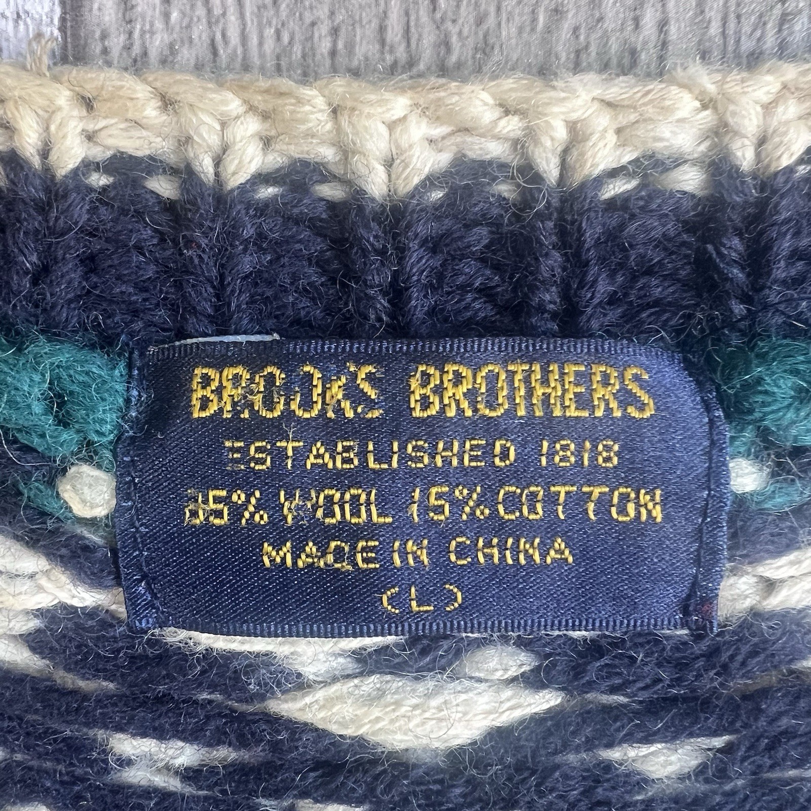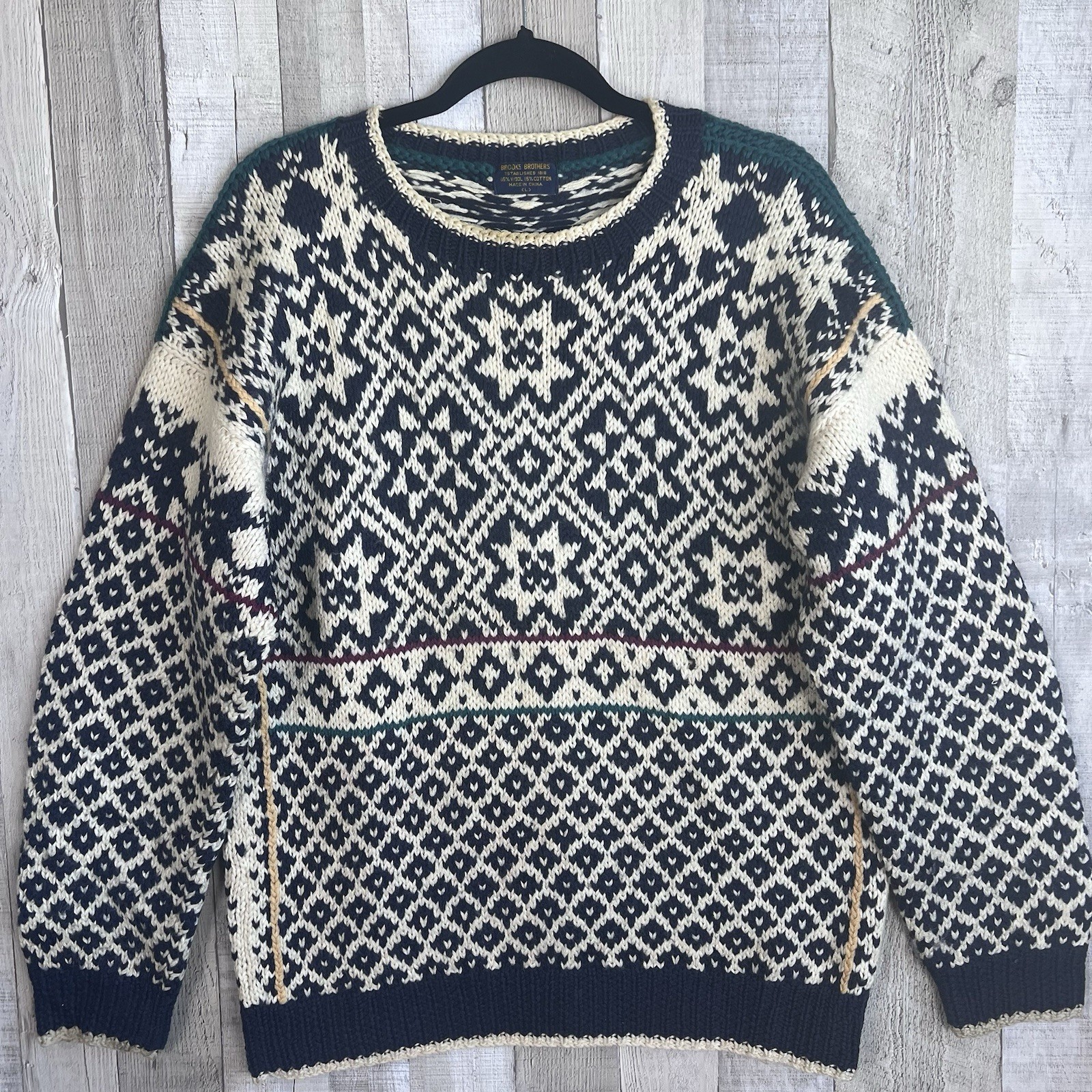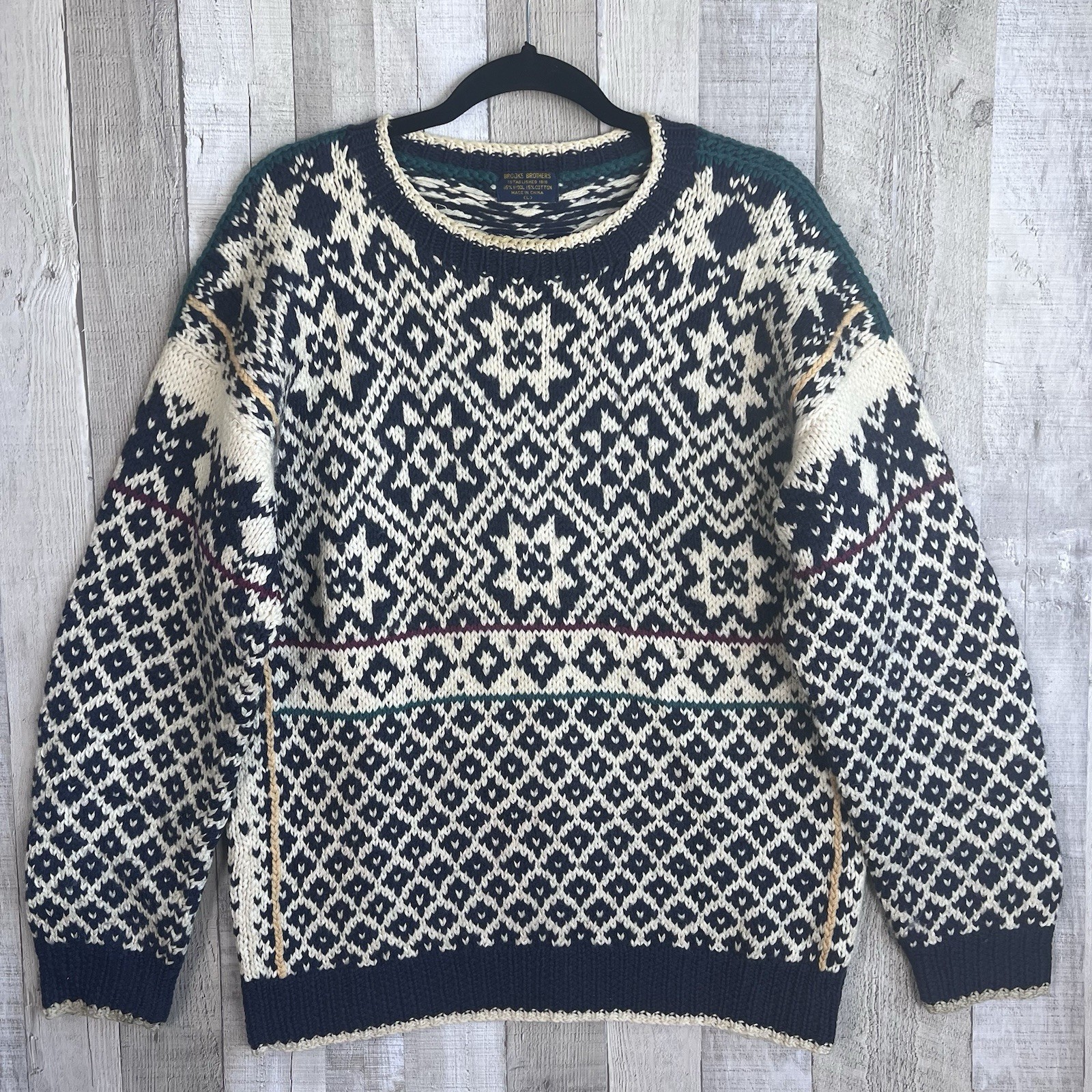 Vintage Brooks Brothers Hand Knit Fair Isle Nordic Crewneck Sweater Size Large