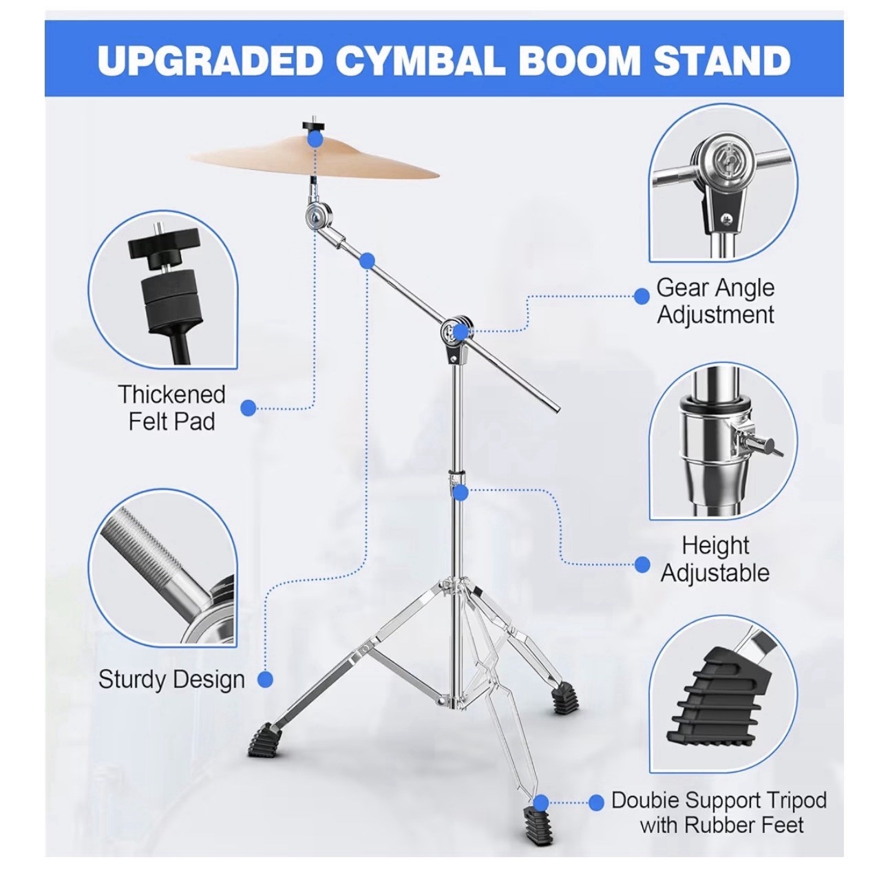 Boom Cymbal Stand, Adjustable Cymbal Stand Boom Stand for Drum Hardware Percussi