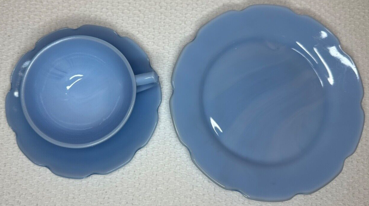c1925 Jeannette Glass Child's CHERRY BLOSSOM Delphite Toy Trio Tea Dinner Set