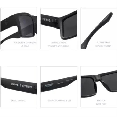 как выглядит Spy Cyrus Mens HD Polarized Sunglasses Matte Black Happy Lens-original box фото