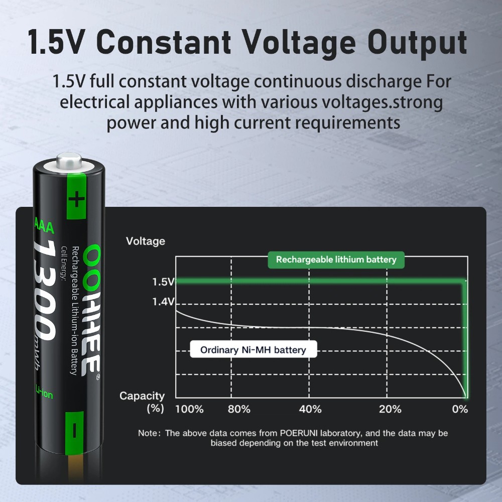 8PCS 1300mWh AAA 1.5V Rechargeable Lithium Batteries Thin Charging Storage Box