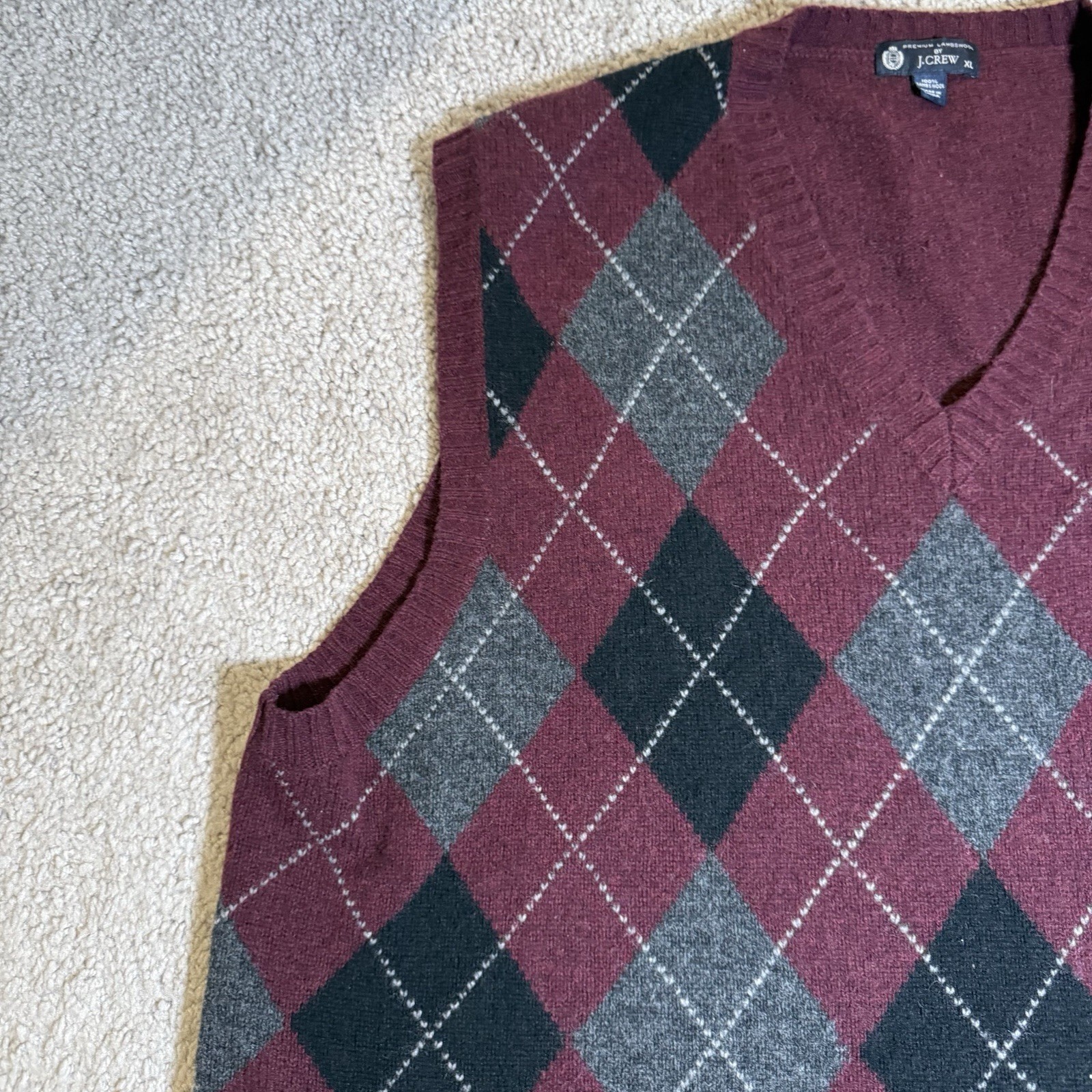 как выглядит J.Crew 100 Lambswool Argyle Sweater Vest Burgundy Gray Black V-Neck Mens XL фото