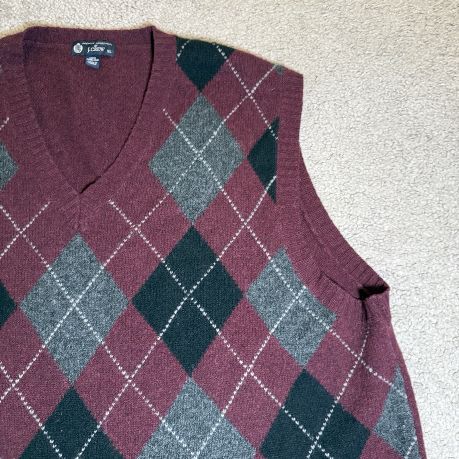 J.Crew 100 Lambswool Argyle Sweater Vest Burgundy Gray Black V-Neck Mens XL