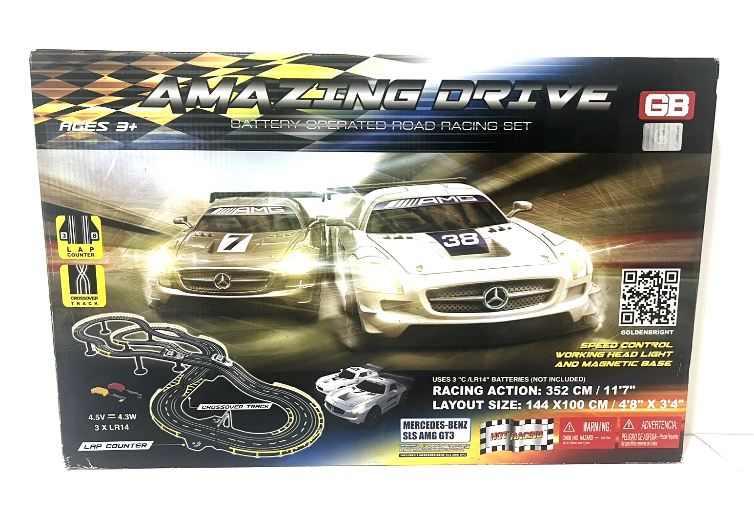 GOLDEN BRIGHT AMAZING DRIVE CROSSOVER ROAD RACING SET SLOT TRACK MERCEDES-BENZ
