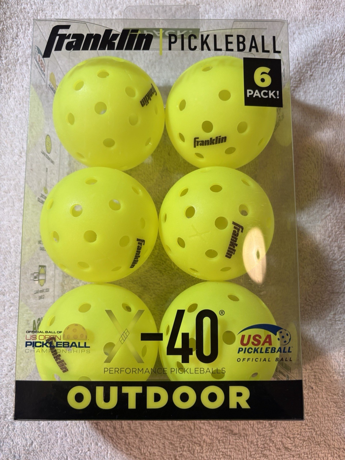 New 6 Franklin X-40 Pickleball Outdoor Ball set of 6 Optic Yellow, free shippng