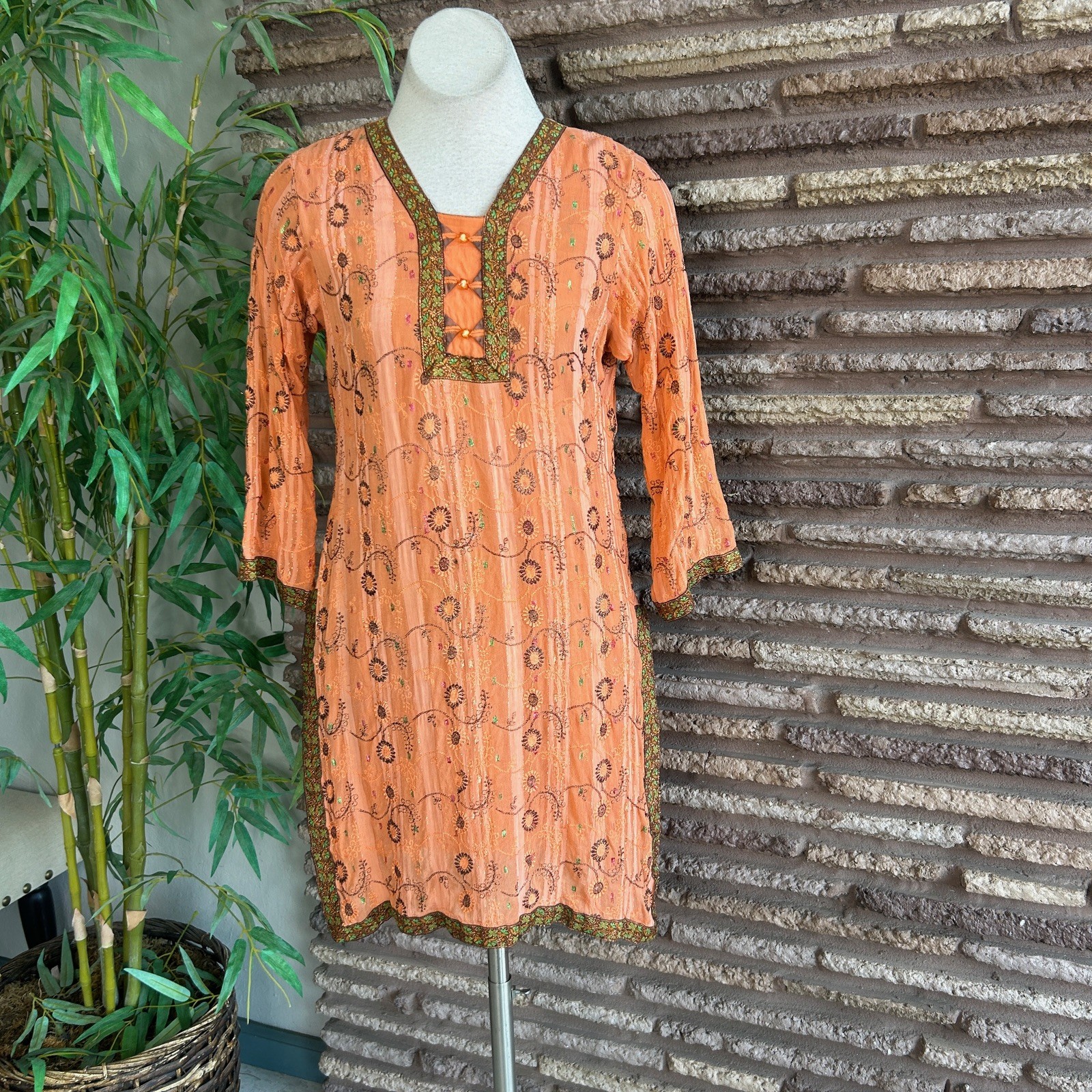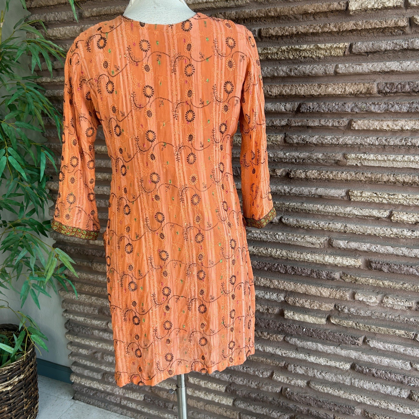 как выглядит Orange Embroidered Kurta Floral Braiding фото