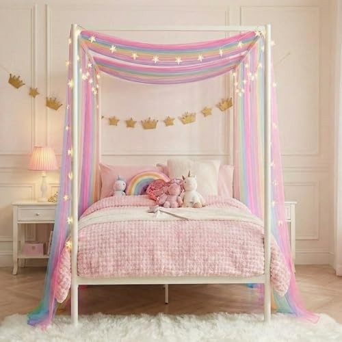 House Bed Canopy for Girls Canopy Bed Curtains 63W x 181L Pack of 2 Rainbow