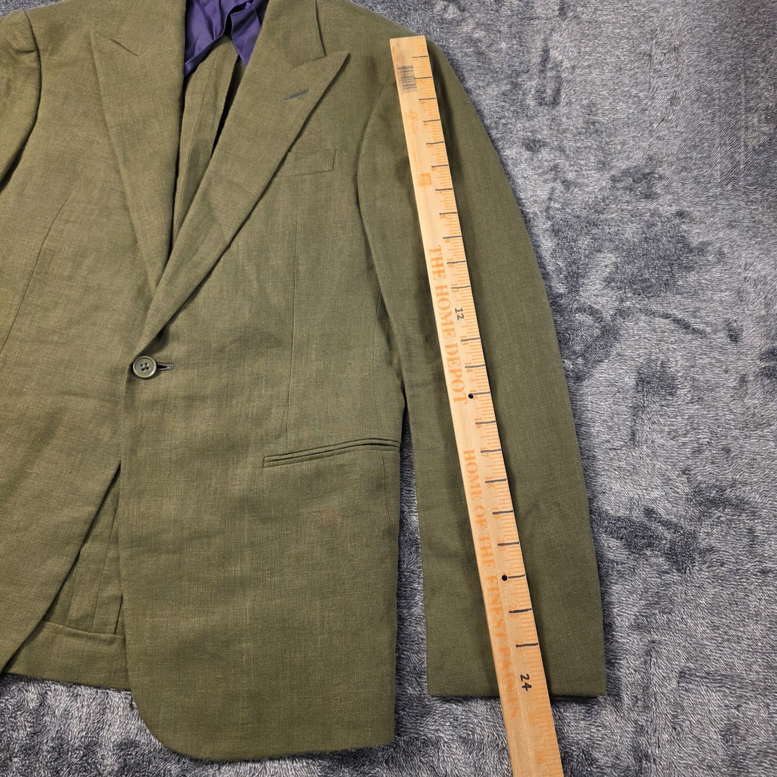 как выглядит Ralph Lauren Purple Label Kent Linen Tuxedo Jacket Mens 38S Olive Green 2995 фото