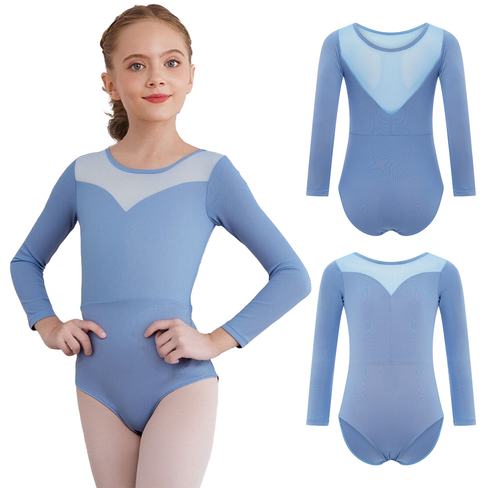 как выглядит Girls Costume Gym Practice Dance Leotard Dancewear Bodysuit Training Sheer Kids фото