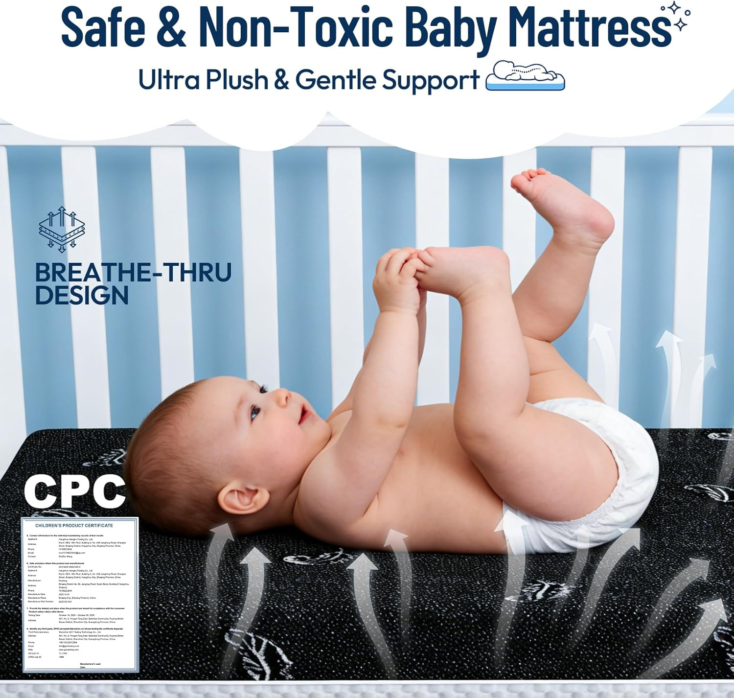 Dual-Sided Memory Foam Crib Mattress with Waterproof Cover, 52x27 inches