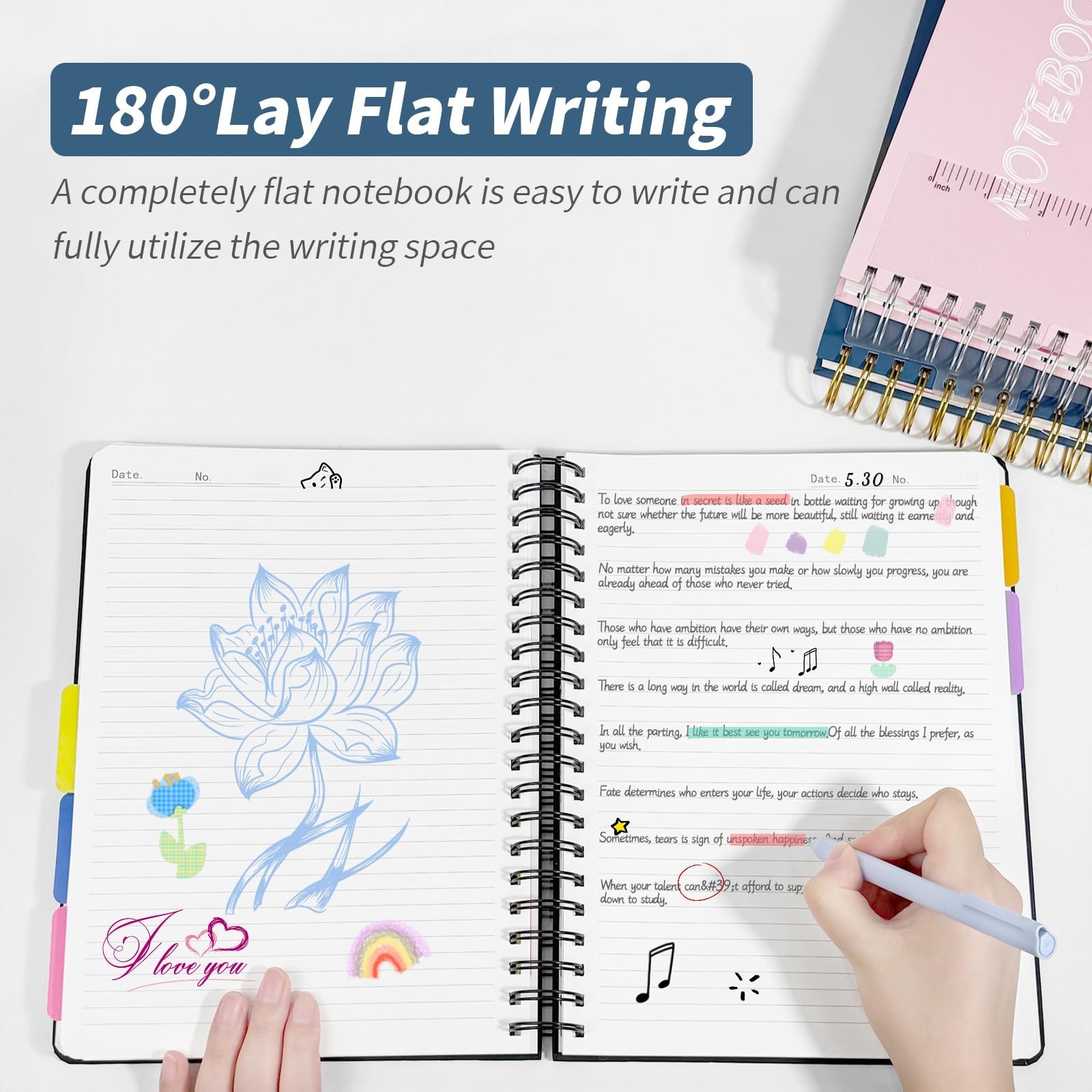 5 Subject Notebook College Ruled, 300 Pages A4 Hardcover Spiral Notebook with...