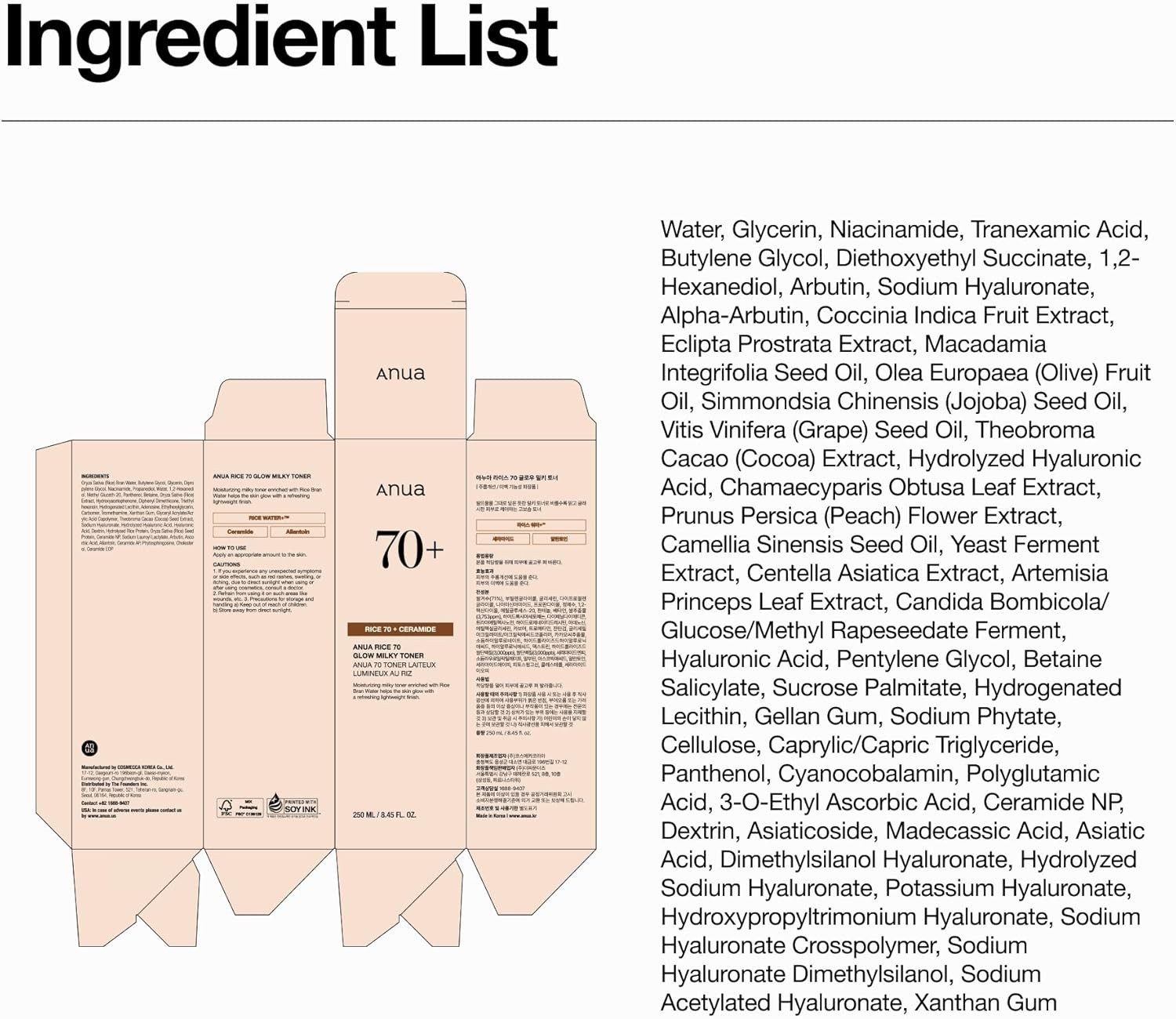Anua Rice 70 Glow Milky Toner, Glass Dewy Skin, Hydrating Barrier Care, Rice