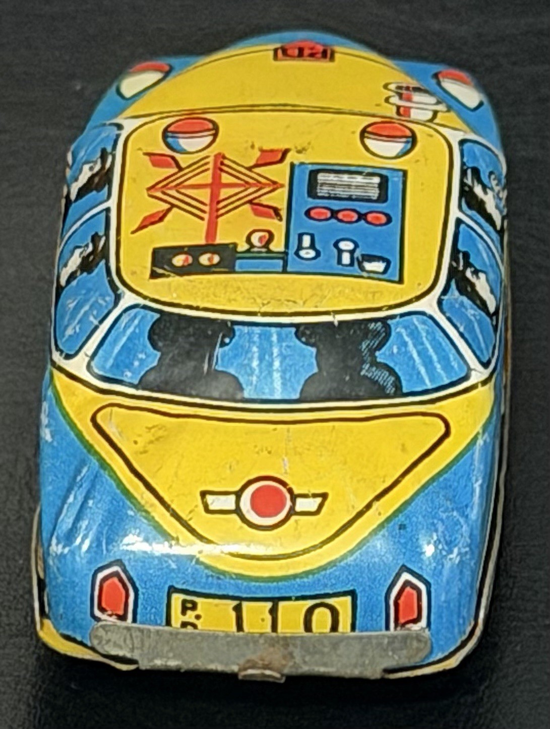 1950s Tin Litho Police Car Friction Toy 3.5 Made in Japan Vintage