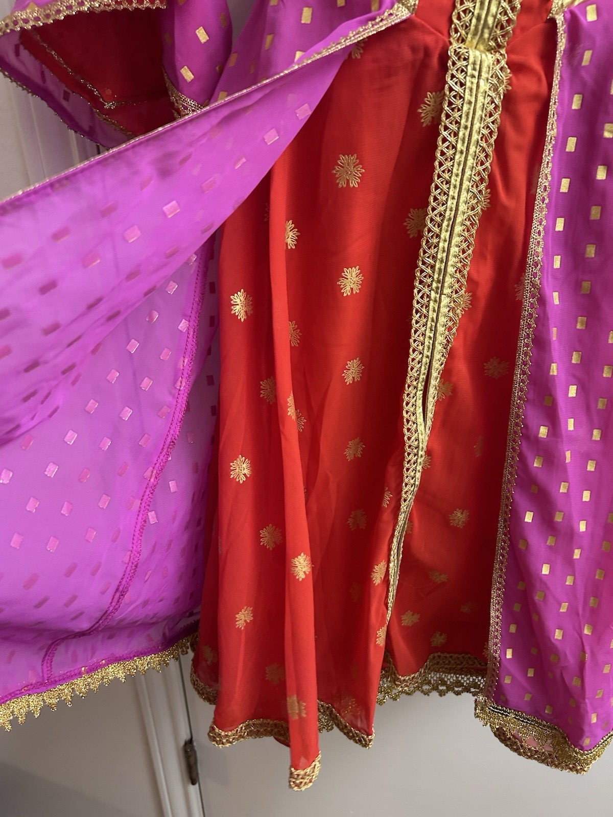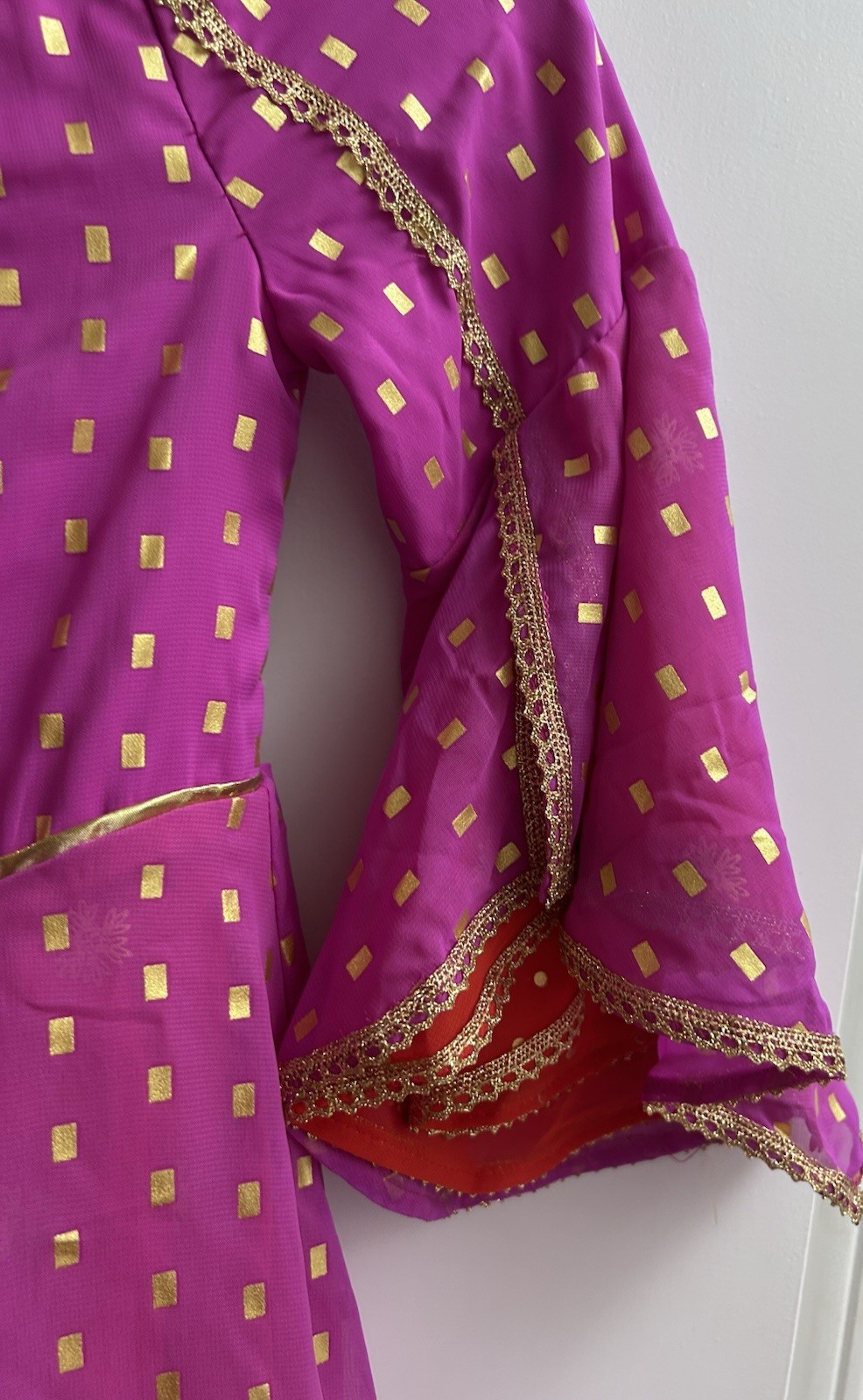 как выглядит Disney Size 5/6 Jasmine Deluxe Costume Gown, Gold Lace Trim And Chiffon Overlay фото