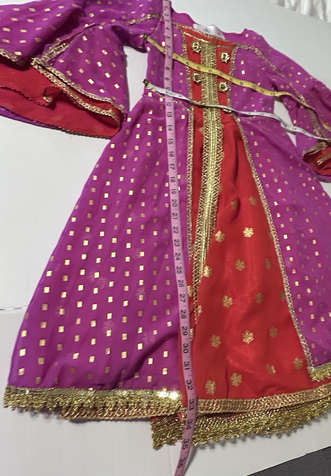 Disney Size 5/6 Jasmine Deluxe Costume Gown, Gold Lace Trim And Chiffon Overlay