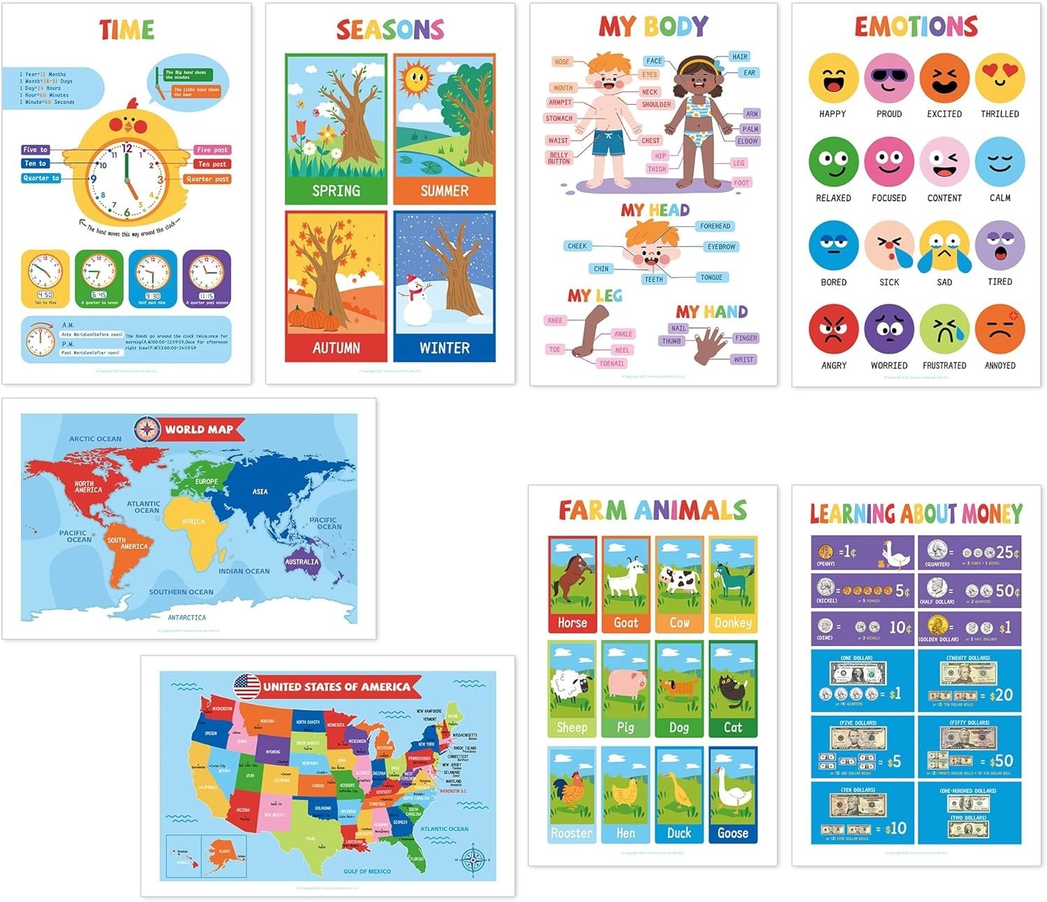 16 Laminated Educational Posters - Toddler to 5th Grade Learning Charts