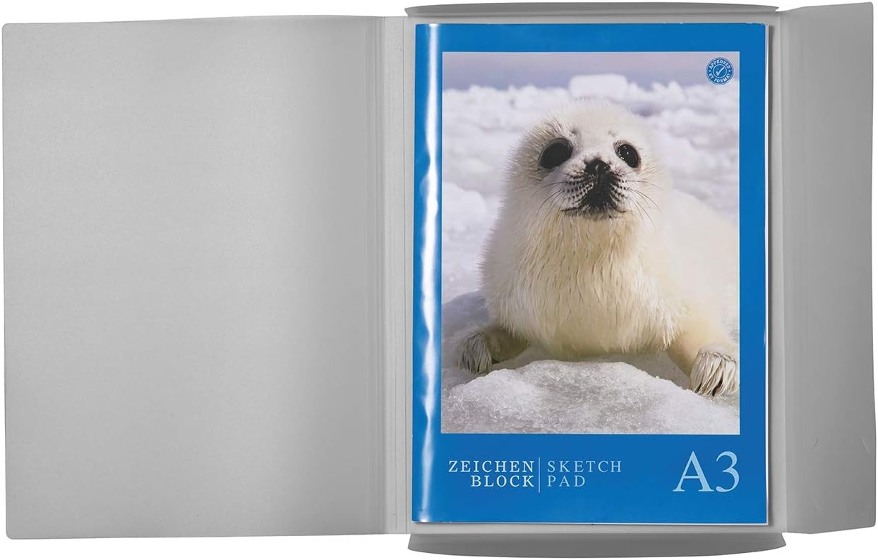 HERMA Elastic Folder Translucent in Grey, A3, Sturdy Plastic, with 3 Inner Flaps