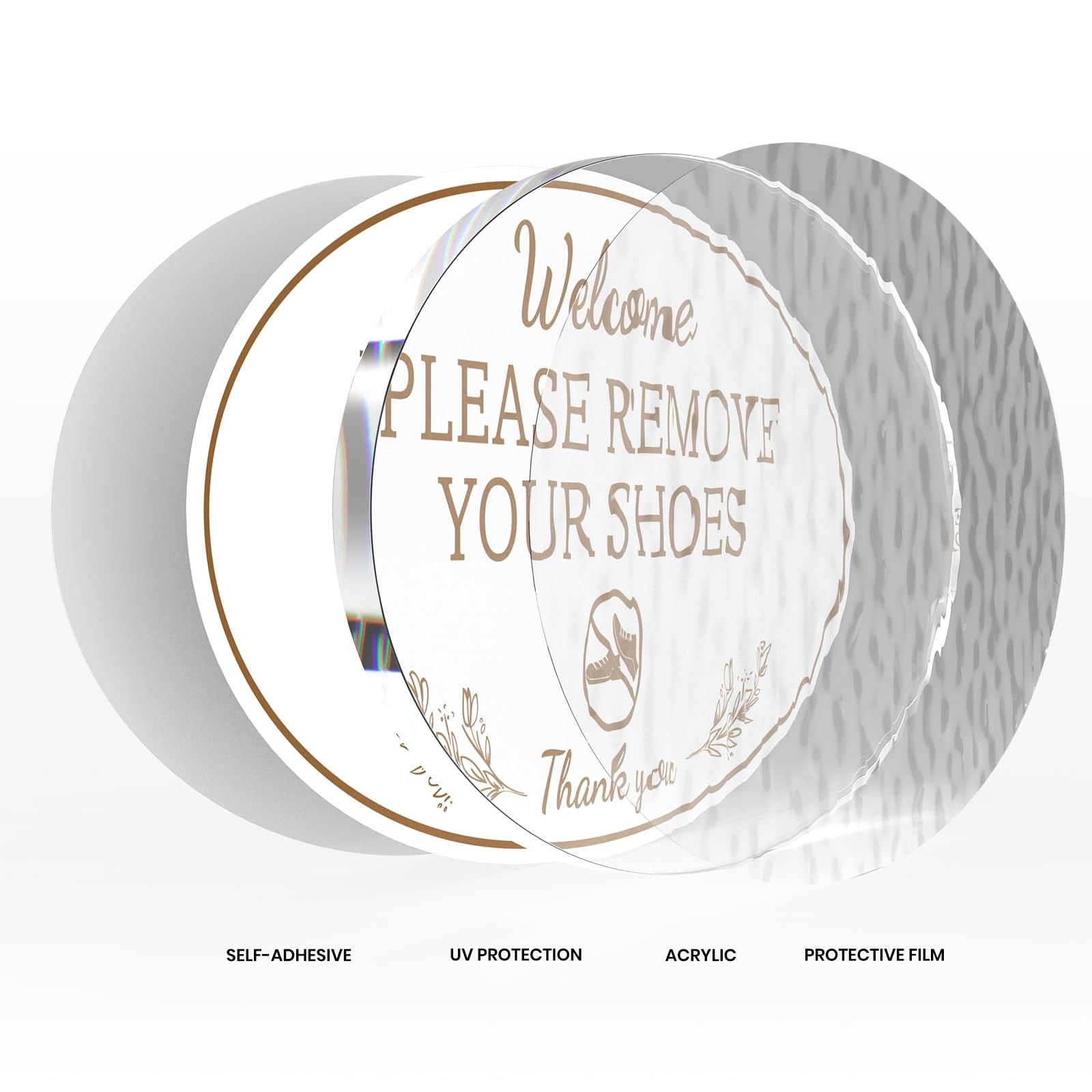 2 Pack Please Remove Your Shoes Sign 8x4 Inch White Acrylic SelfAdhesive