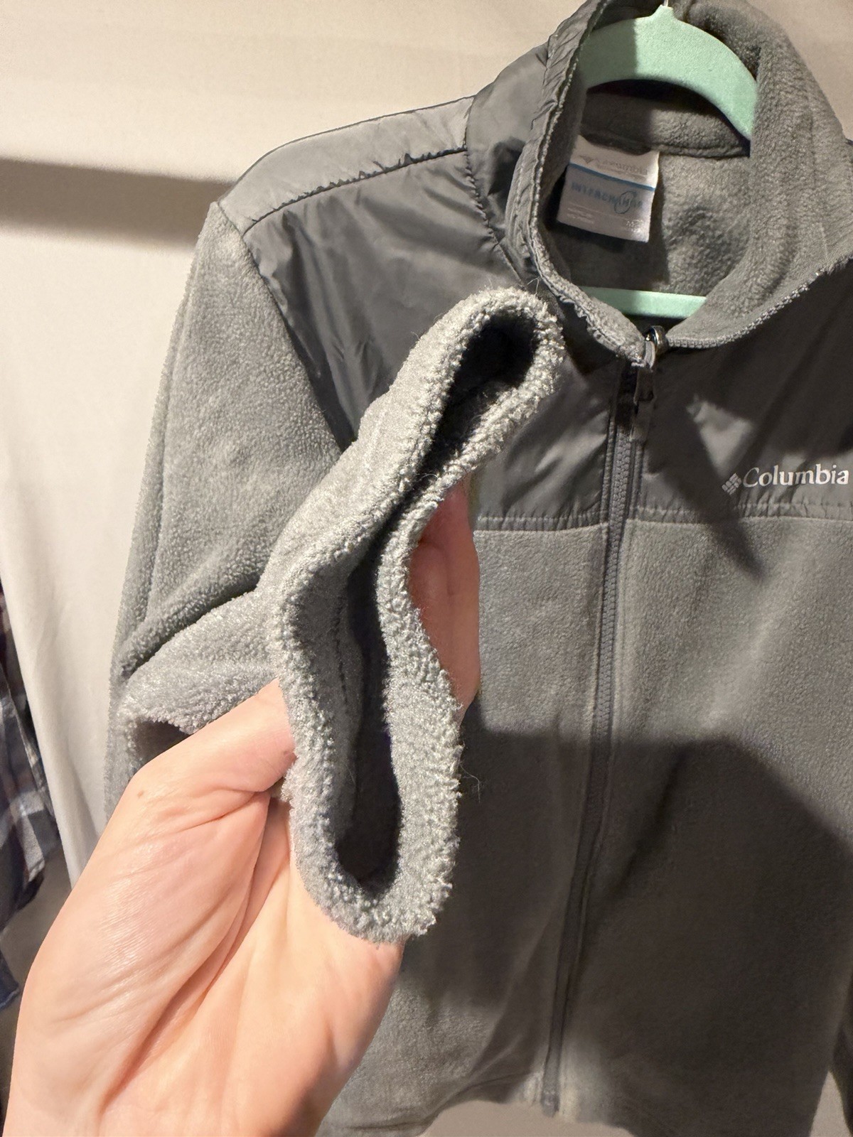 как выглядит Columbia youth Gray Fleece Jacket Full Zip Collared Outdoor Mid-Length Size M фото