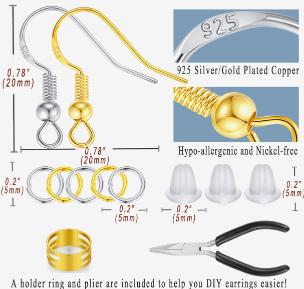 как выглядит MAIBAOTA Earring Hooks for Jewelry Making, 602 Pcs Earring Making Supplies, 925 фото