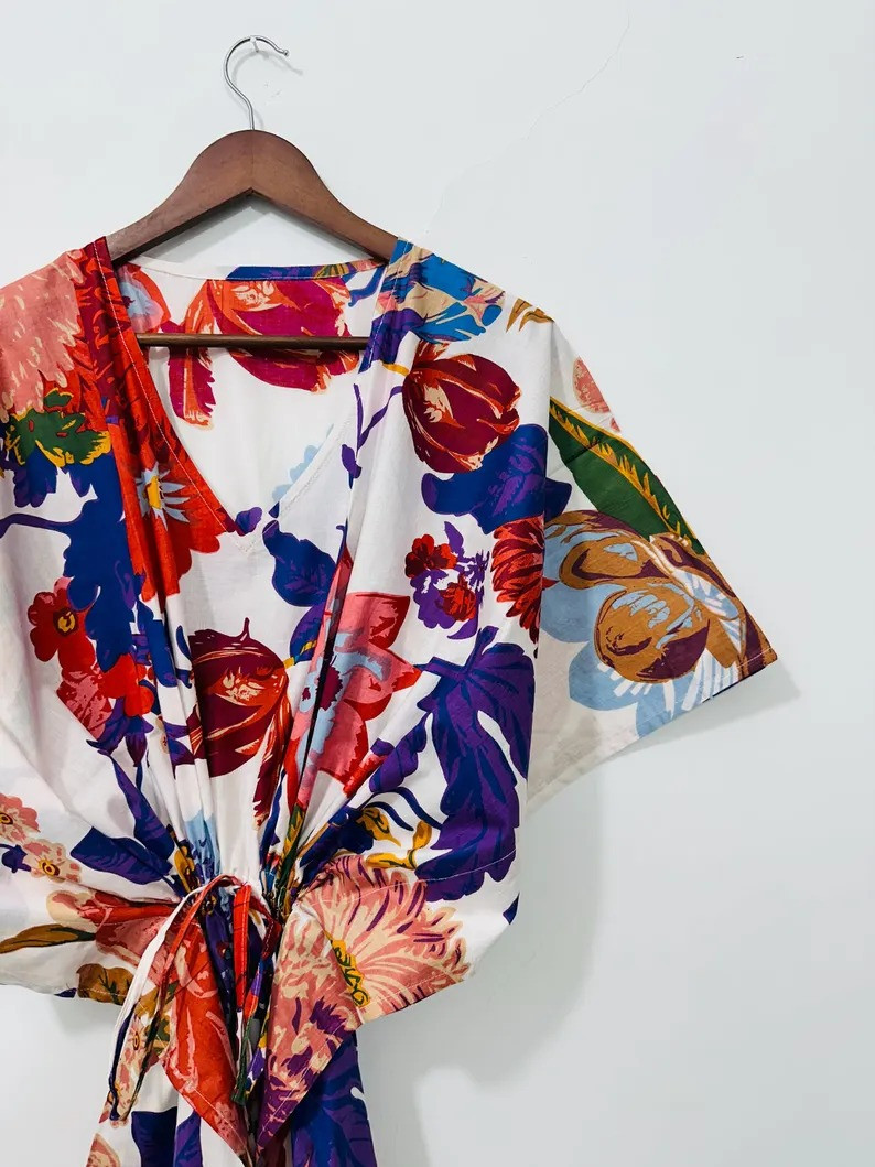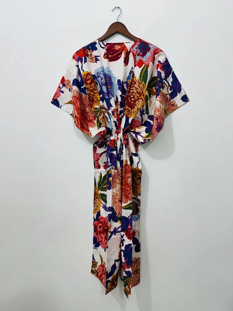 как выглядит Indian White Floral Handmade Cotton Kaftan Maxi Dress Women