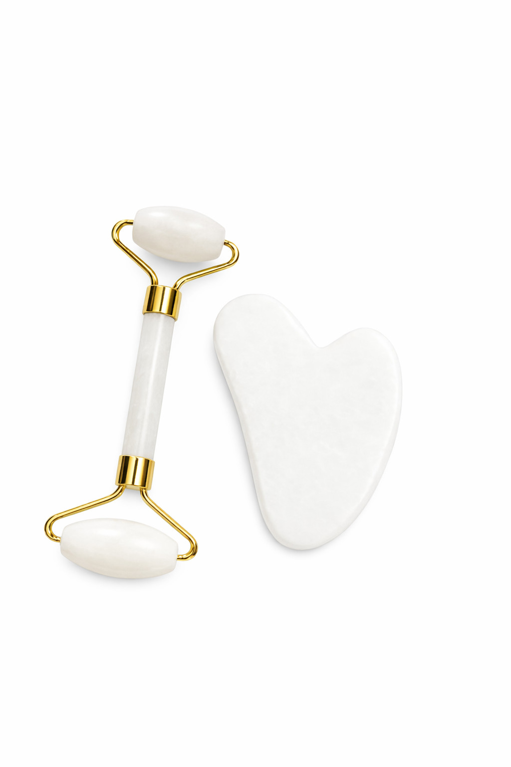 White Jade Facial Roller Gua Sha Set For Puffiness Lymphatic Drainage