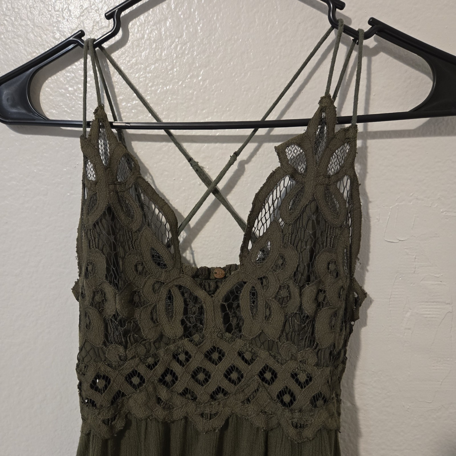 как выглядит Free People Adella Slip Dress Crochet Lace Bodice Adjustable Straps Size Small фото