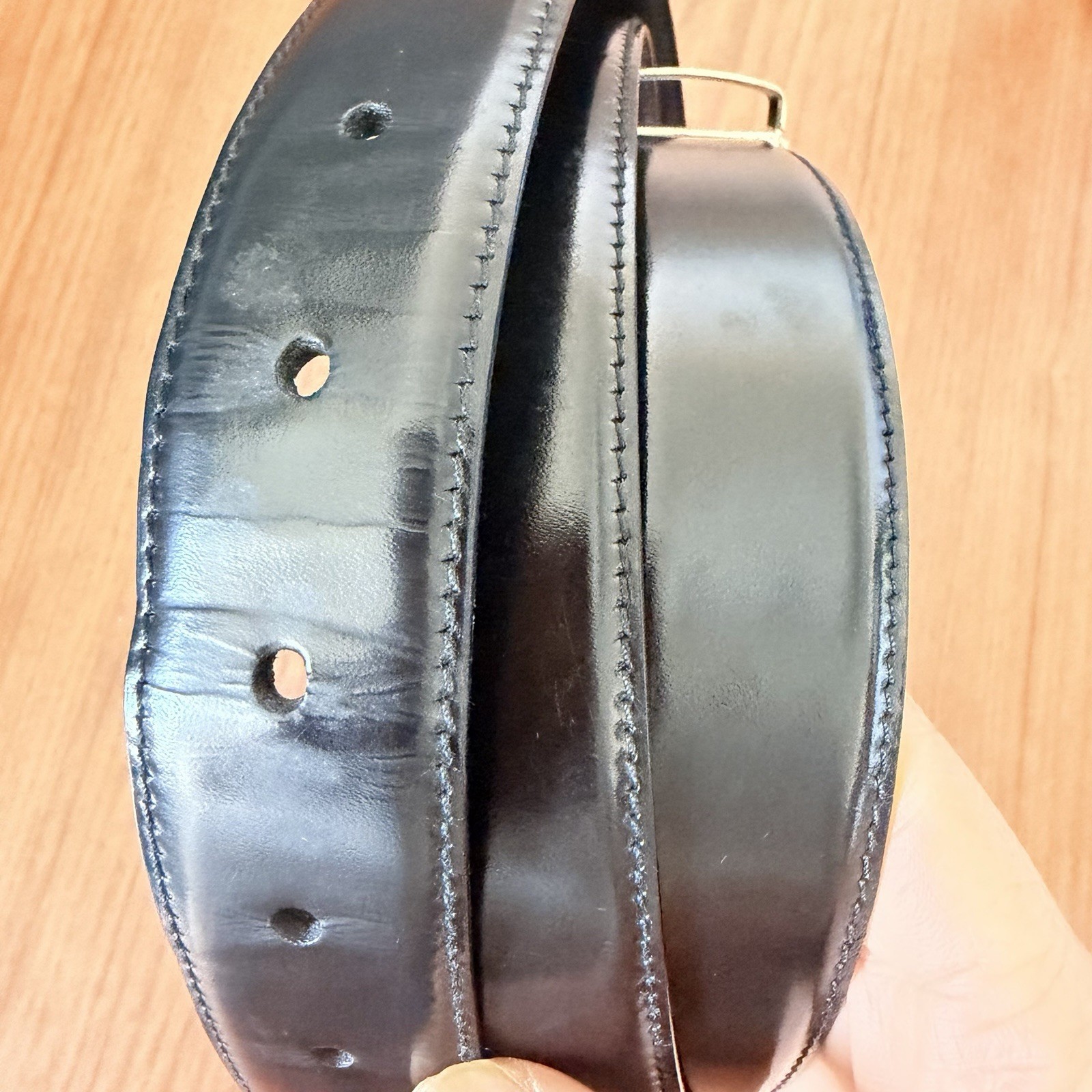 как выглядит Salvatore Ferragamo Black Leather Belt Sz 44 Made in Italy Silver Buckle Classic фото