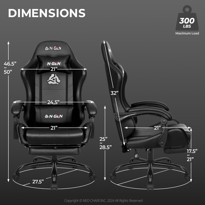 N-GEN GAMING Video Gaming Chair with Footrest Lumbar Support for Home Office