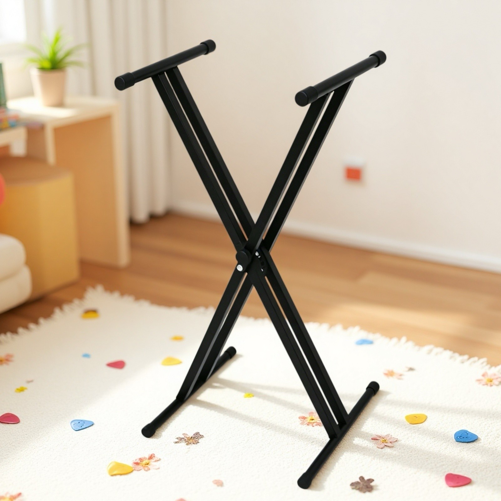 Folding X-Style Keyboard Stand - Adjustable Double Braced Dual-Tube Metal Black