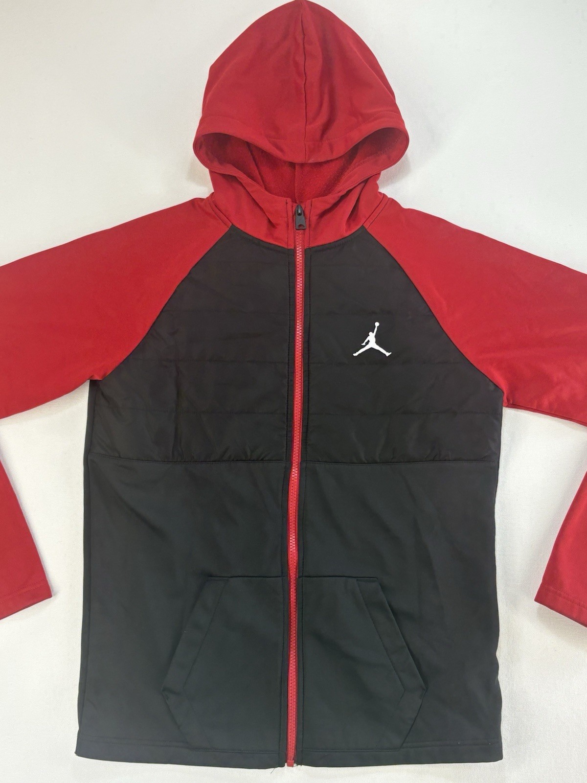 Jordan Boy s Full Zip Hooded Jacket Hybrid Puffer Size XL Black Red Jumpman
