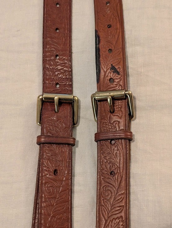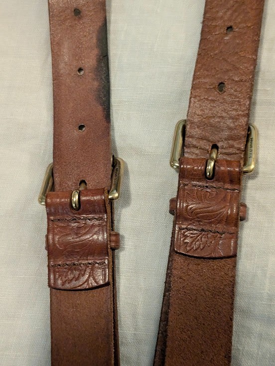 Polo Ralph Lauren Vintage Western Leather Brass Suspenders Moose Logo FLAWS