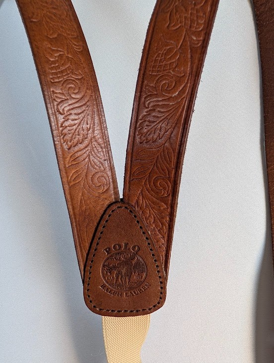 как выглядит Polo Ralph Lauren Vintage Western Leather Brass Suspenders Moose Logo FLAWS фото