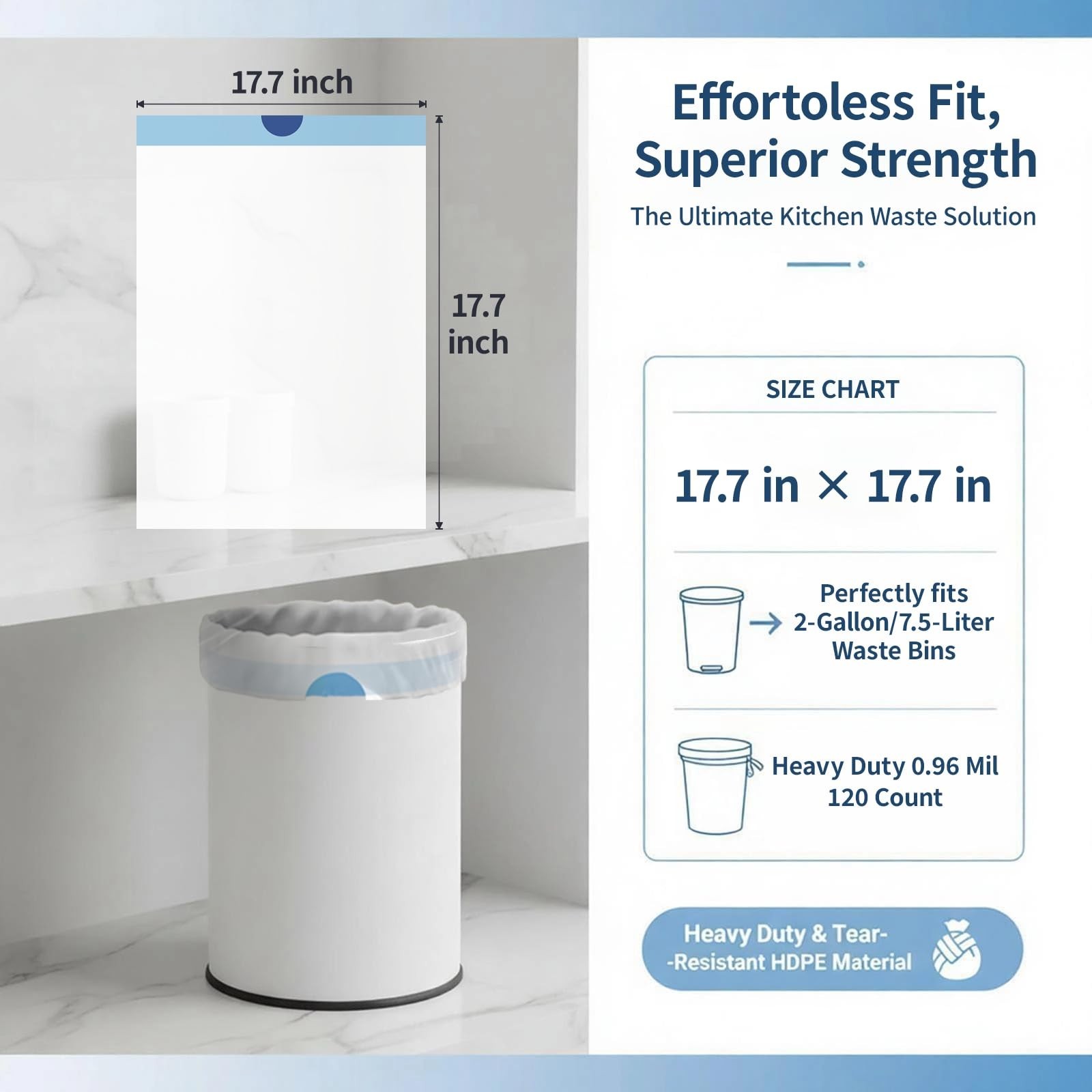 2 Gallon Trash Bags Drawstring 0.96 Mil - 120 Count Small Garbage Bags Unscen...