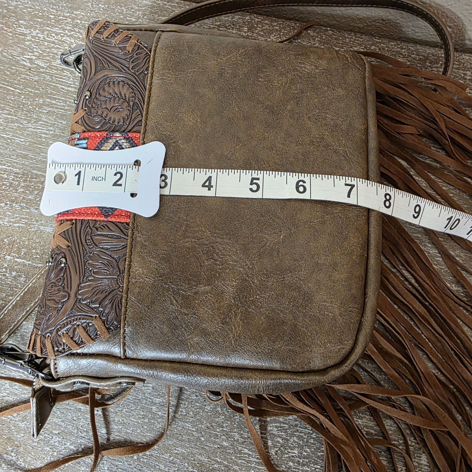 как выглядит Brown Cross Body Bag Tooled Leather Fringe Purse Western Aztec - See ALL PHOTOS фото