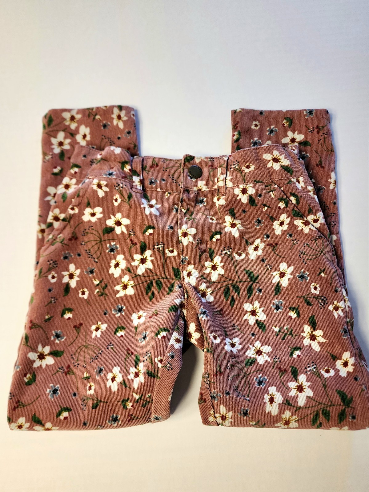 BISBY By Little English Corduroy Pants Girl Sz 5 Fine Wale Pink Floral Retro