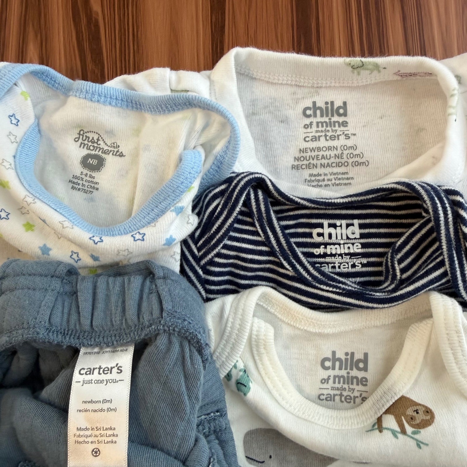 Baby Boy Bundle 7pc Carter's Gerber Newborn Bodysuits Overalls Stripes Stars