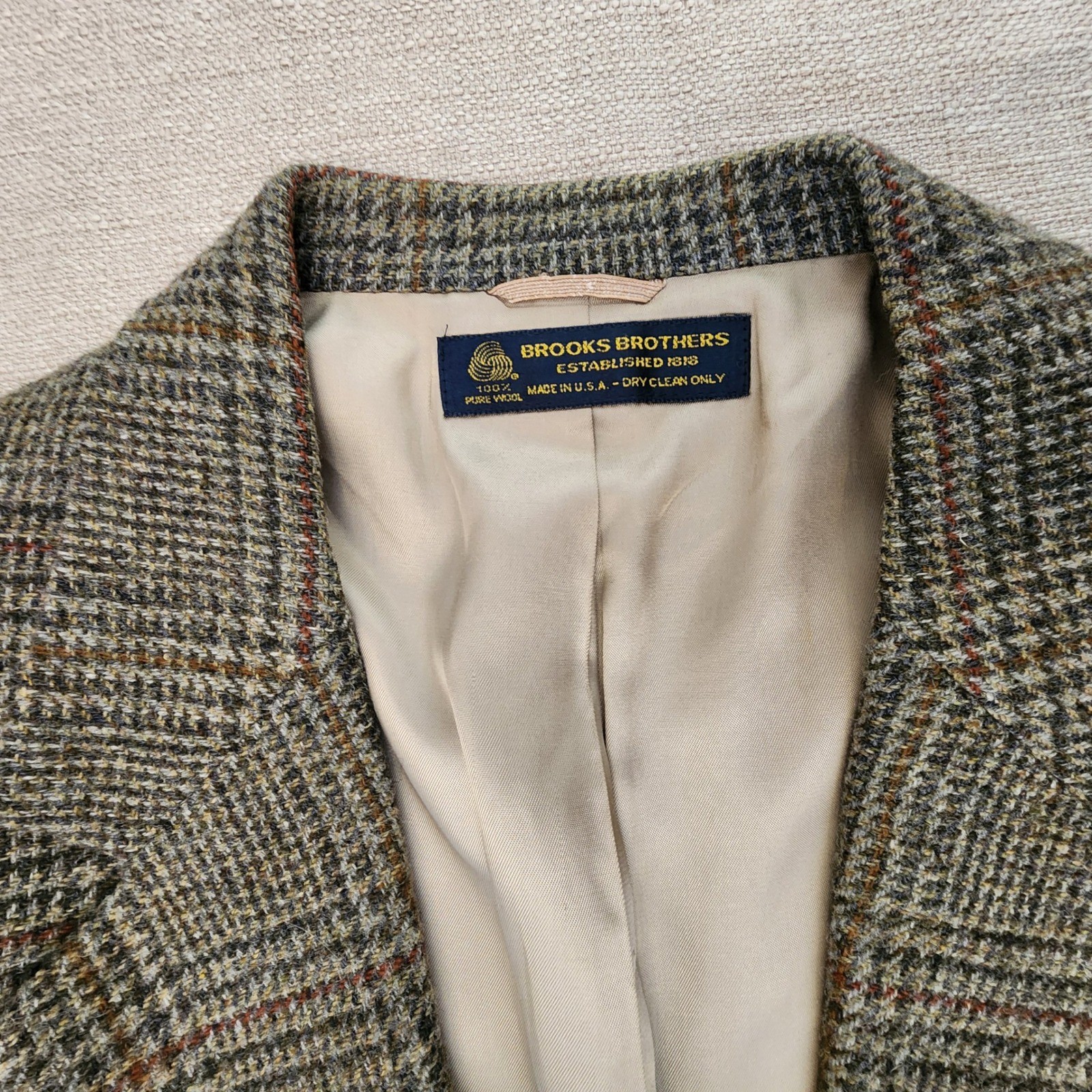 Brooks Brothers Blazer Men 44R Houndstooth Plaid Wool Sport Coat Jacket Vtg USA