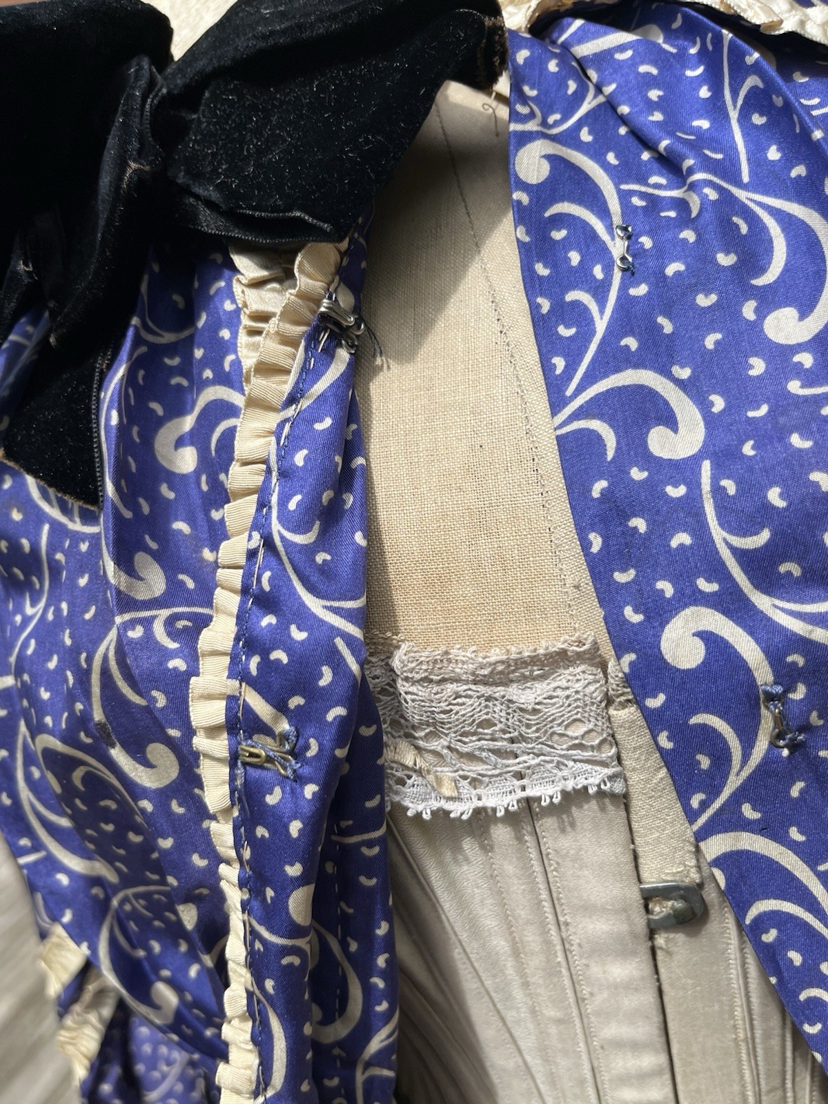 как выглядит Antique Victorian 1900 s Top and Skirt Purple Cream Print Dress, Lined фото