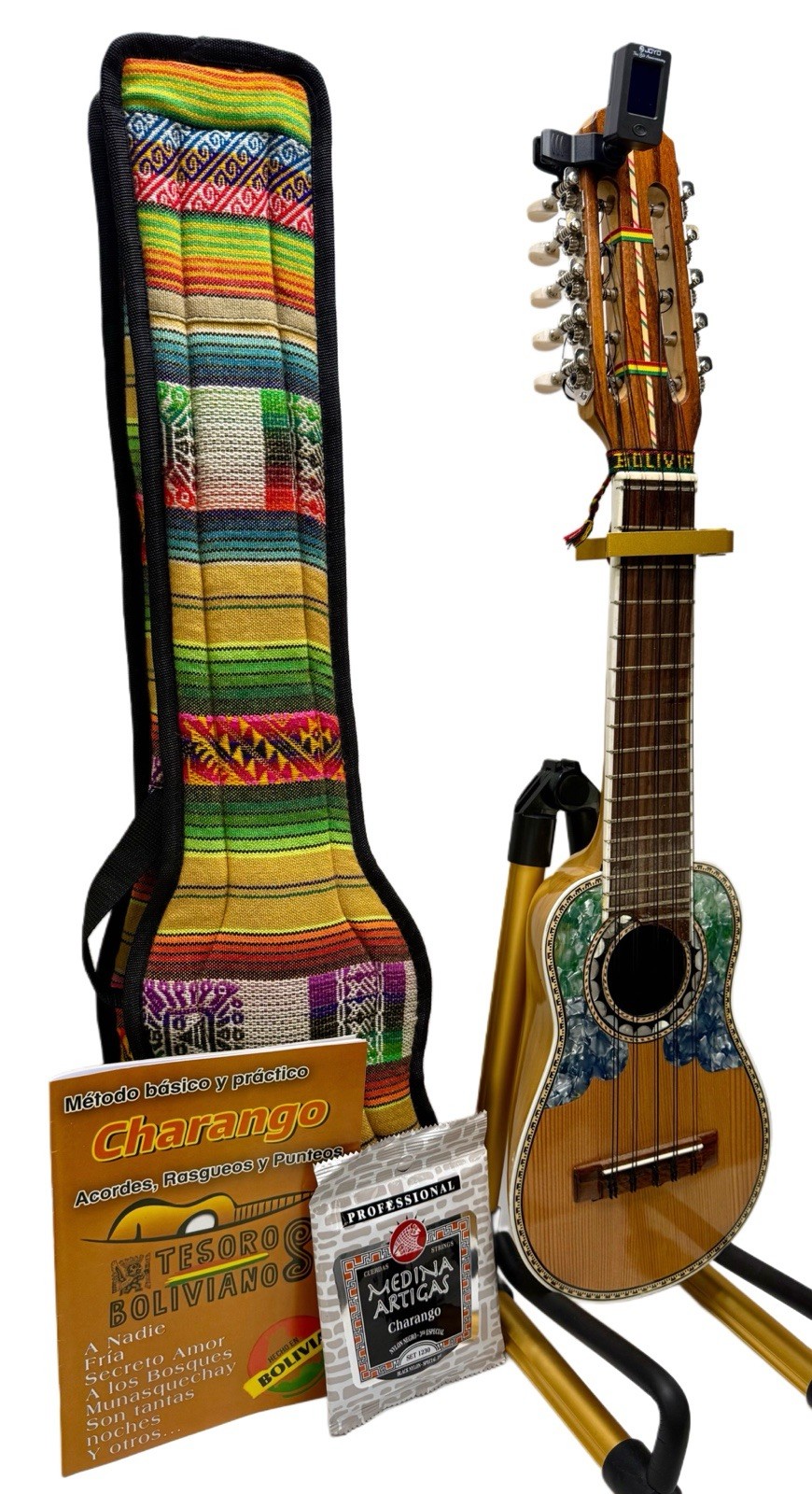 Authentic Handmade Bolivian Charango Set: Beginner Bundle with Aguayo Gig Bag