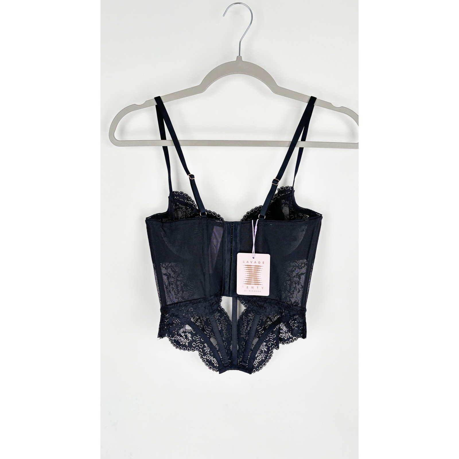 как выглядит Savage X Fenty Haute Lace Bustier Corset Black Caviar Womens Small New Lingerie фото