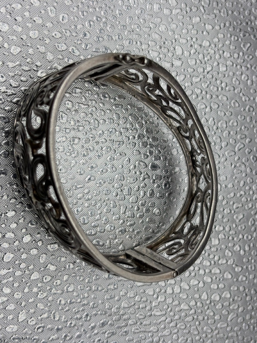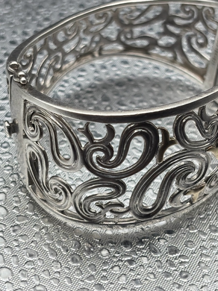 как выглядит STERLING SILVER FLORAL HAMMERED CUFF BANGLE- TDW044234 фото
