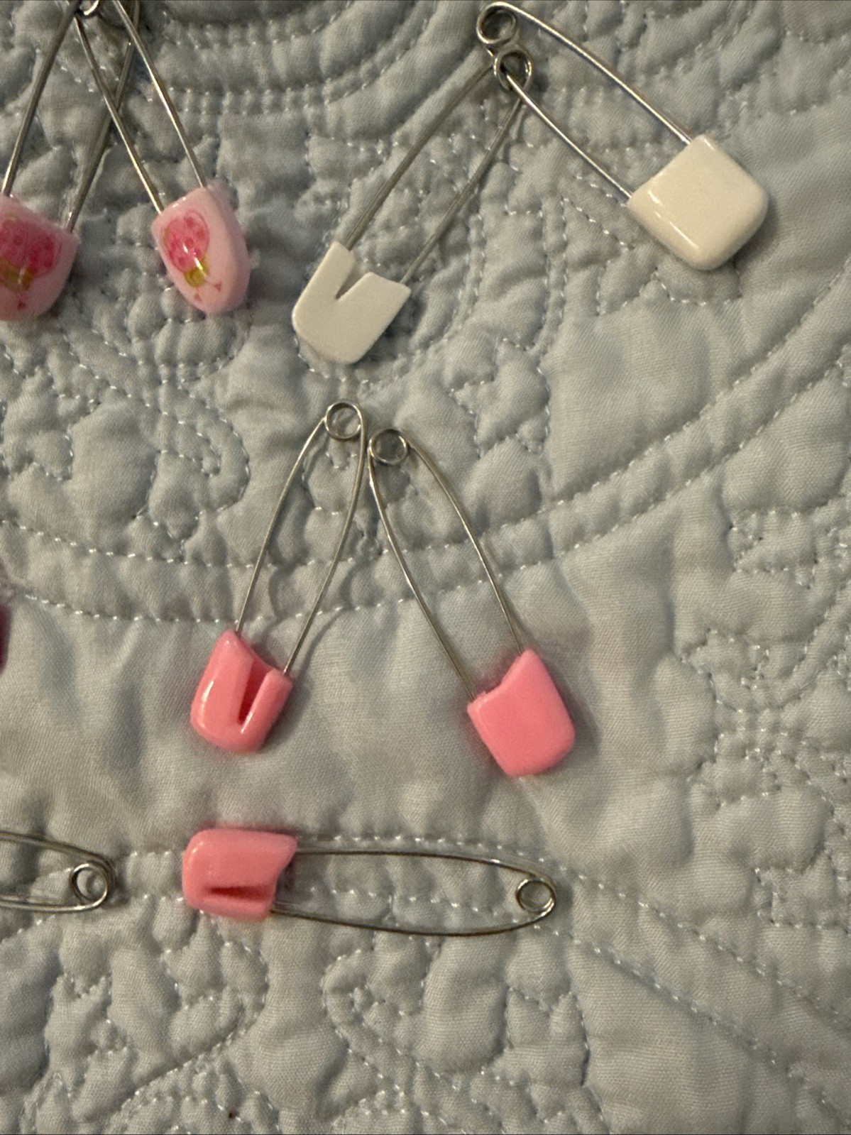 Vtg Cloth Diaper Pins Lot Of 12 Pink White Safety Pins-