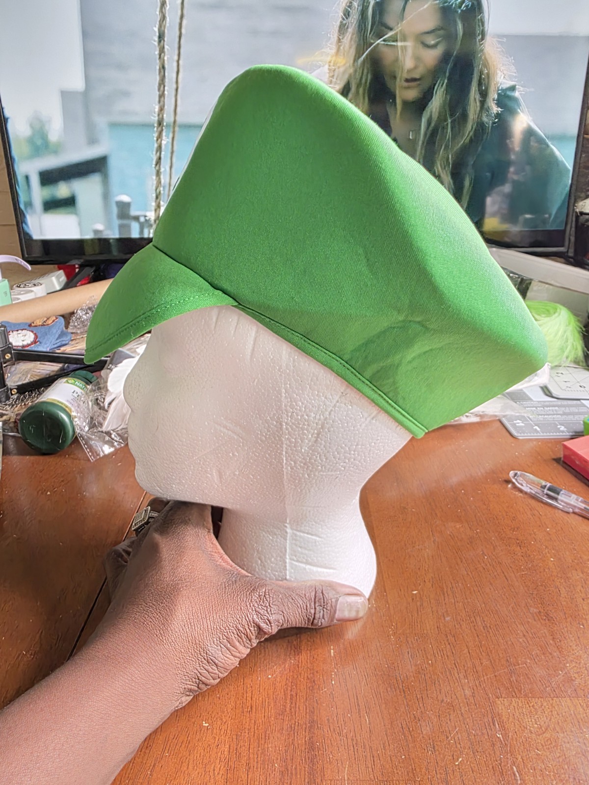 как выглядит Luigi Cosplay Foam Hat Cap Green Halloween Costume Big Kid OR Adult PT8 фото