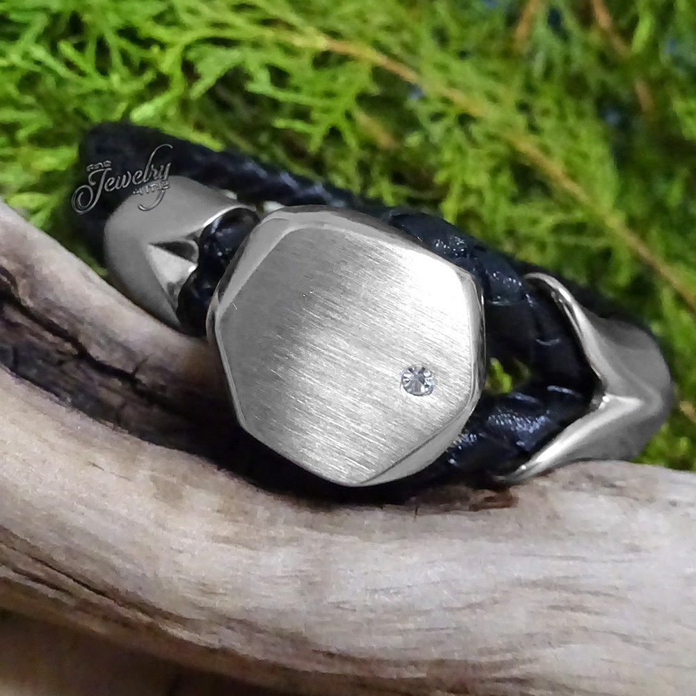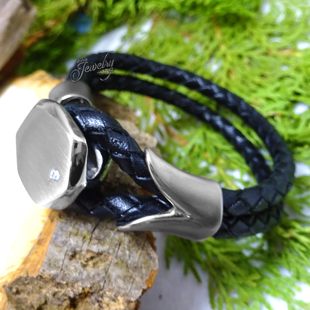 как выглядит Braided Leather Stainless Steel 8 Bracelet with CZ Crystal фото