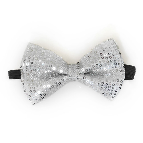 NEW Tuxedo Classic BowTie Sequin Neckwear Adjustable Unisex Bow Tie - SILVER