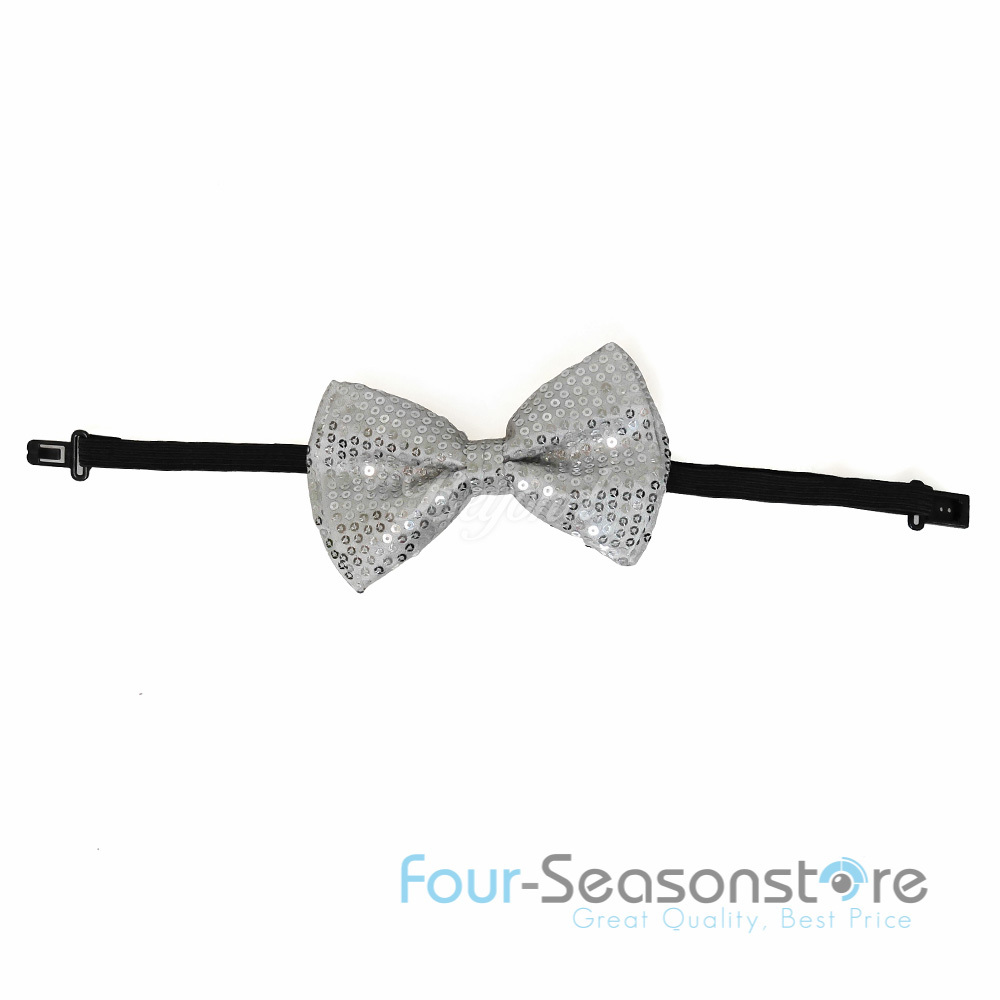 Silver Tuxedo Classic BowTie Sequin Neckwear Adjustable Unisex Bow Tie