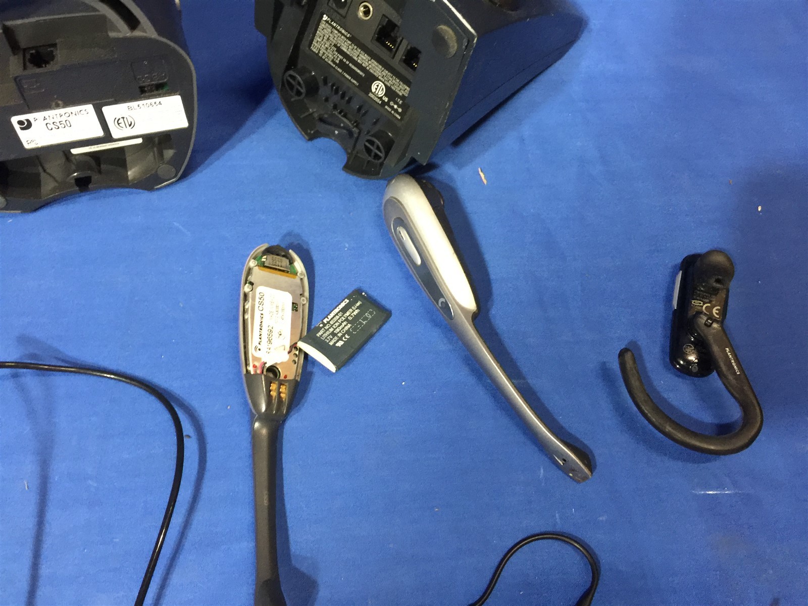 как выглядит Lot of Plantronics 10 earpieces, charging bases, power cords UNTESTED CS50 232 фото